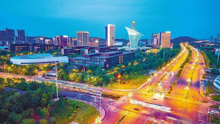 光谷高新大道如同一条金色的链条,串起沿线的光电子和大健康万亿产业集群。(湖北日报全媒记者 魏铼 摄)